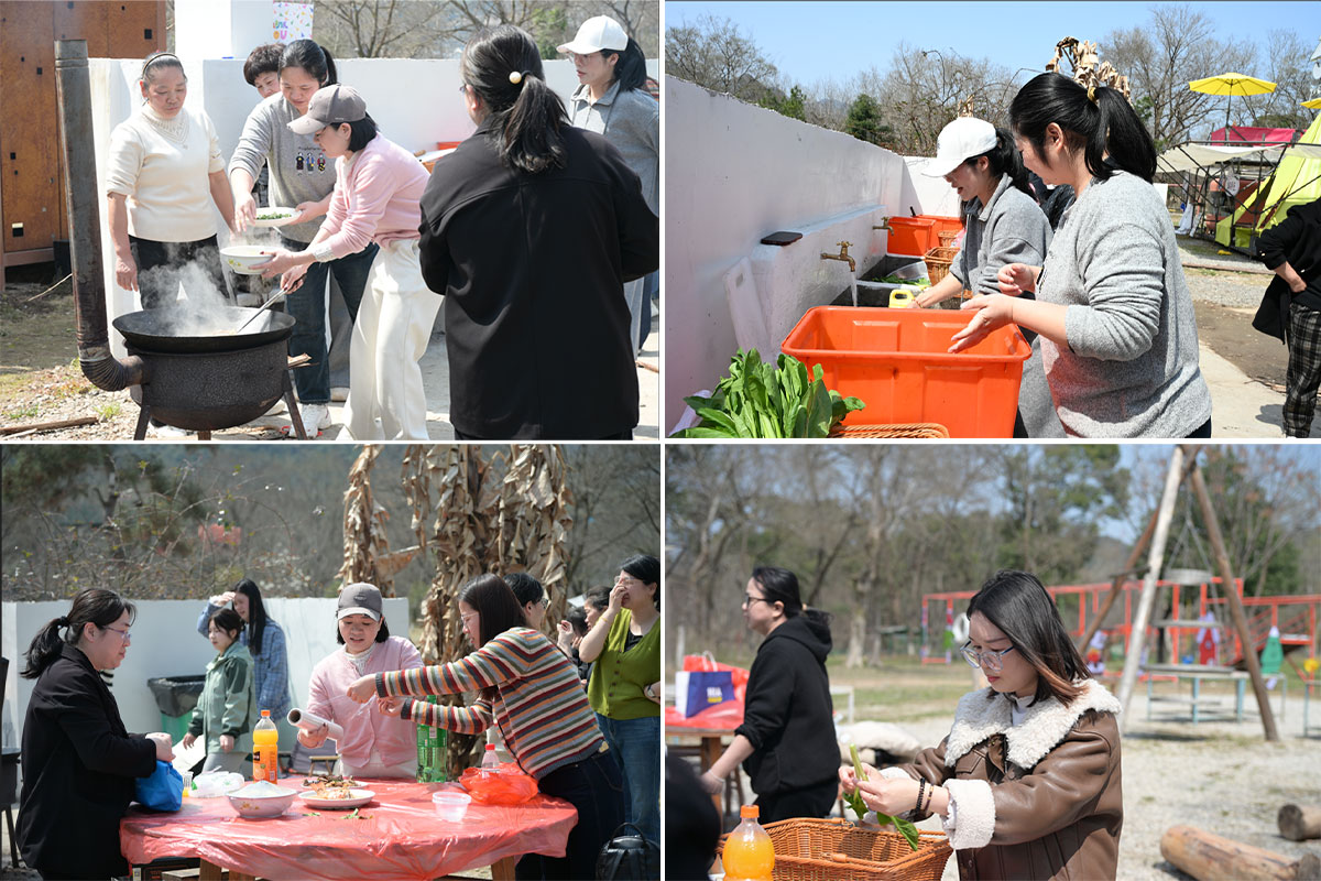 上午10 點,女職工們迎著和煦春風抵達楠溪江。在婦聯(lián)主席虞總的帶領下,大家分組協(xié)作,共同完成搭建露營天幕、準備食材等任務。女職工們各司其職,默契配合,洗菜、切菜、生火、烹飪…… 炊煙裊裊間,一道道色香味俱全的佳肴陸續(xù) “出爐”。 婦聯(lián)主席與體系副總也親自參與其中,與大家共享勞動成果,現(xiàn)場歡聲笑語不斷。