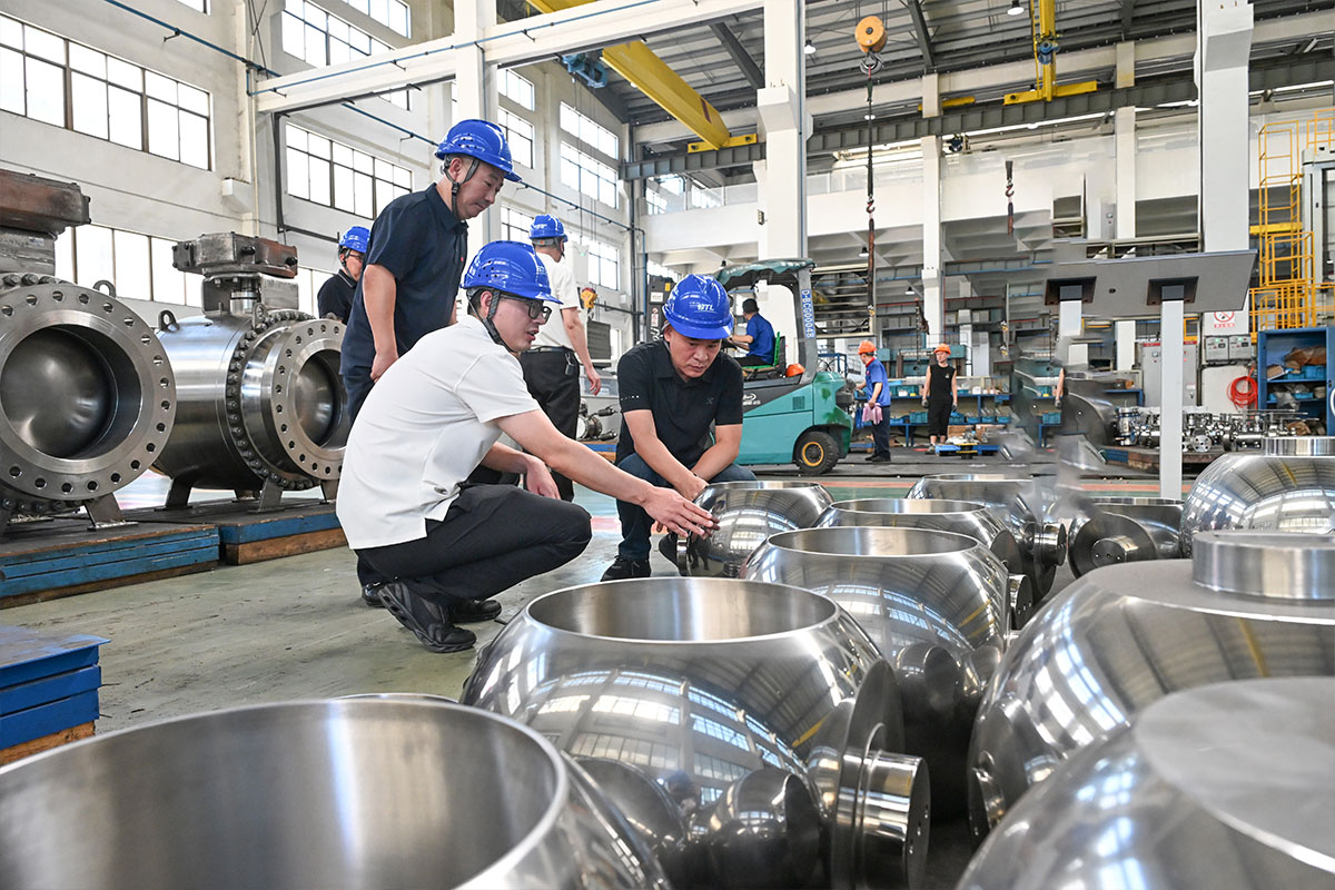 在焊接區(qū)域,考察團詳細察看了高標準的焊接工藝及無損檢測設備。伯特利嚴格遵循API、CE等國際認證標準,通過先進的焊接技術與質量控制體系,確保產品密封性能與結構強度達到行業(yè)領先水平。