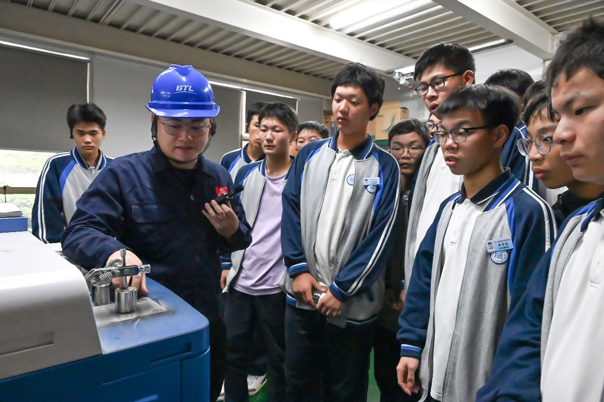 在實驗室參觀環(huán)節(jié),檢驗主管親自接待并細致講解各類實驗設(shè)備的功能用途、操作流程及檢測標準。從精密的檢測儀器到嚴謹?shù)膶嶒灹鞒蹋瑥臄?shù)據(jù)采集到結(jié)果分析,主管深入淺出的講解讓學子們對產(chǎn)品質(zhì)量管控體系有了系統(tǒng)了解,也激發(fā)了大家對專業(yè)技術(shù)學習的濃厚興趣。學子們不時駐足提問,與主管積極互動,現(xiàn)場學習氛圍十分熱烈。?